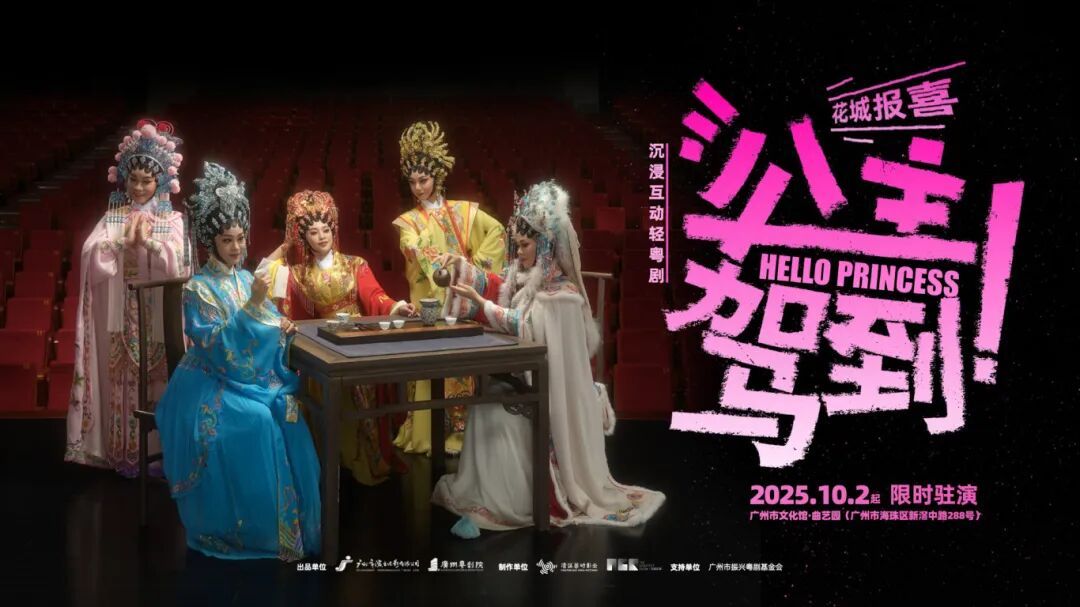 “饮杯新抱茶!”“富贵又荣华!”——在热闹喜庆的曲艺园,观众齐声喊出广府婚俗贺词。这不是传统剧场,而是沉浸互动轻粤剧《公主驾到!》的演出现场。《公主驾到!》自10月2日起在广州市文化馆正式开演,由广州市演出电影有限公司、广州粤剧院联合出品,剧目以经典粤剧《刁蛮公主戆驸马》为蓝本,将曲艺园改造成凤霞公主的“婚宴现场”,观众以“宾客”身份参与互动。舞台主视觉是一个巨大的广府非遗木艺灯笼,从布景到细节,都有着浓浓的广府婚嫁文化特色。