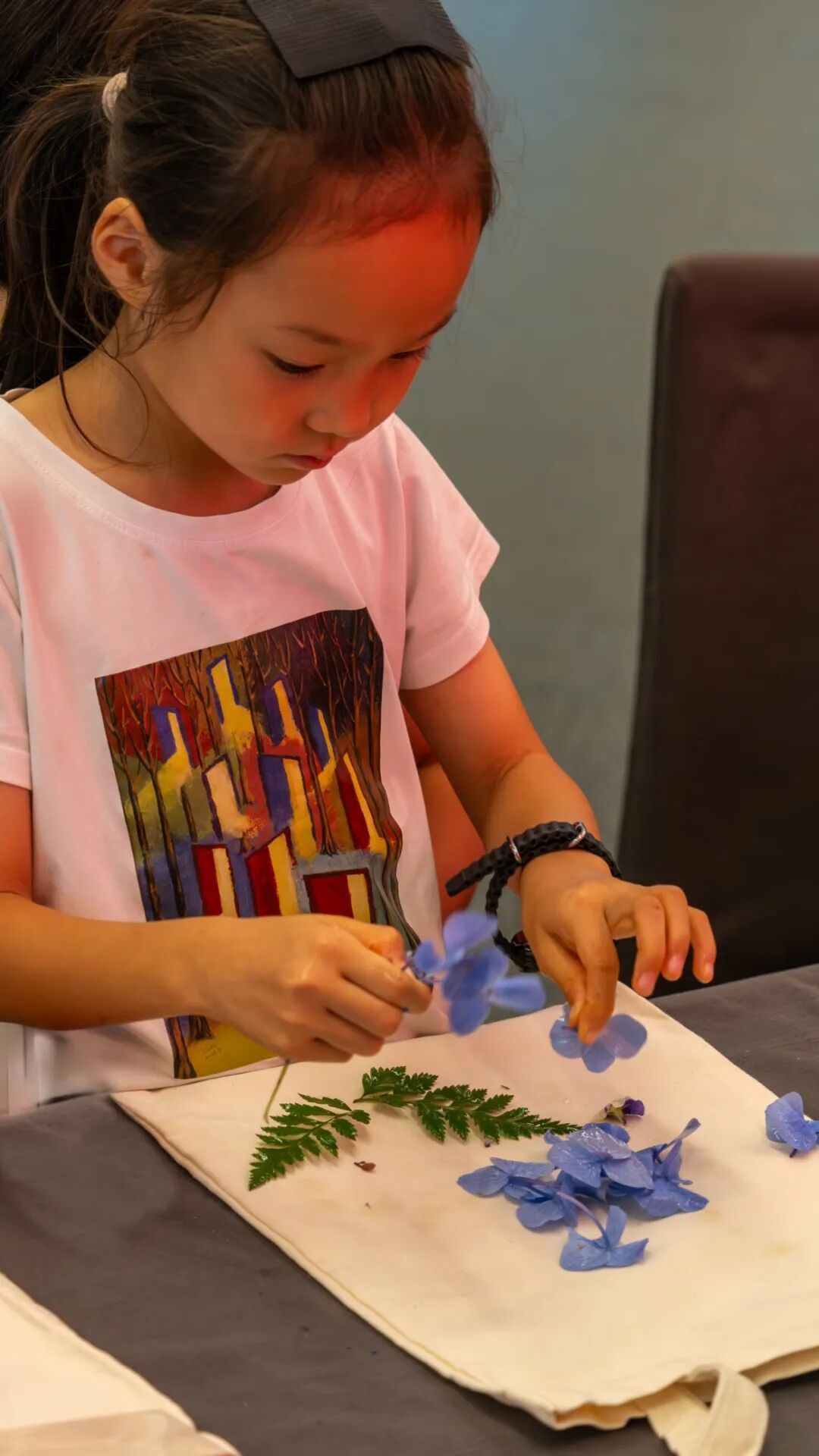 参与者们手持木槌,将植物的叶片轻轻铺在帆布袋上,通过一次次精准敲击,让叶脉的纹理与汁液渐渐显现在布面上。这不仅是一次手作体验,更是与自然的深度对话,将自然的轮廓与色彩永久定格。