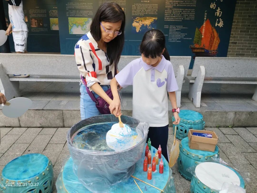 粤海第一关纪念馆于10月1日举办了国庆主题非遗漆扇制作活动,共有37名游客参与。活动中,游客通过自主调配红、黄、金等国庆主题色彩的漆料,亲手制作团扇,既体验了传统非遗技艺的独特魅力,也增强了节日活动的互动性与纪念意义。