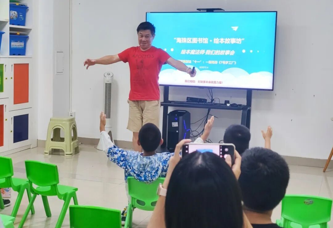 10月4日,小手牵着大手,走进美丽的海珠区少年儿童图书馆绘本故事坊,一场以“一起飞到《7号梦工厂》绘出我的天空”为主题的亲子绘本故事温情开启。《7号梦工厂》作为经典奇幻绘本,以 “男孩与云朵” 的奇妙冒险为线索,展现了天马行空的想象力,让读者感受 “创造天空” 的乐趣。国庆是承载家国情怀的重要节日,飘扬的国旗、璀璨的烟花、壮丽的山河,都是属于 “中国天空” 的独特风景。在国庆假期,图书馆将绘本阅读与国庆主题结合,通过 “读绘本、创天空” 的形式,既能激发儿童的想象力,又能让大家在创作中融入对祖国的祝福,度过一个充满创意与意义的假期。