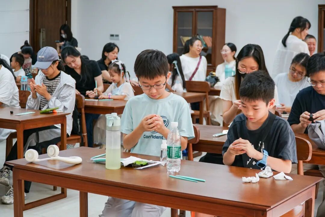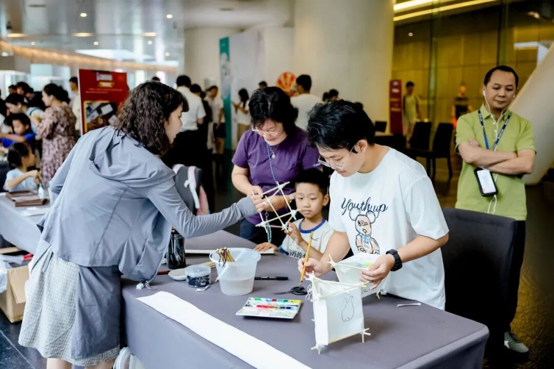 本次展览设五大主题展区,涵盖粤剧、广彩、广绣、剪纸等非遗项目,系统呈现非遗在校园中的传承路径与创新实践。在“我是小小传承人”互动区内,亲子家庭在非遗传承人与学生志愿者的引导下,亲手体验创作非遗作品,让传统技艺可触可感、可试可学;学生非遗Vlog征集、朋友圈集赞等互动活动同步开展,吸引众多市民沉浸式参与,共同感受岭南非遗的独特魅力。