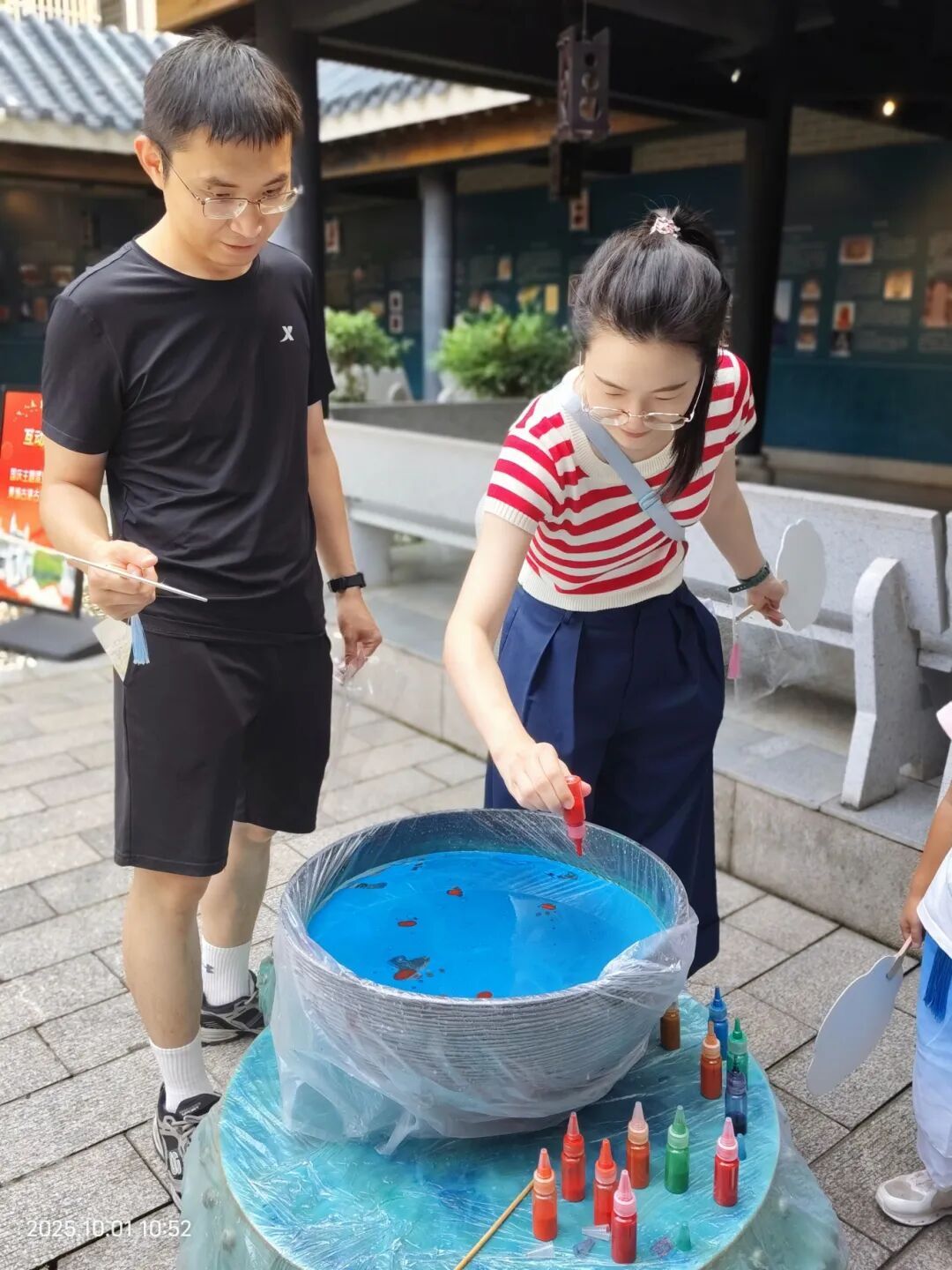 在油纸伞绘制区,参与者们挥洒创意,有的描绘广州塔的现代风姿,有的勾勒中秋明月的诗意画面,更有人巧妙地将国庆元素融入传统工艺。一笔一画间,展现着新时代下传统文化的创新活力。