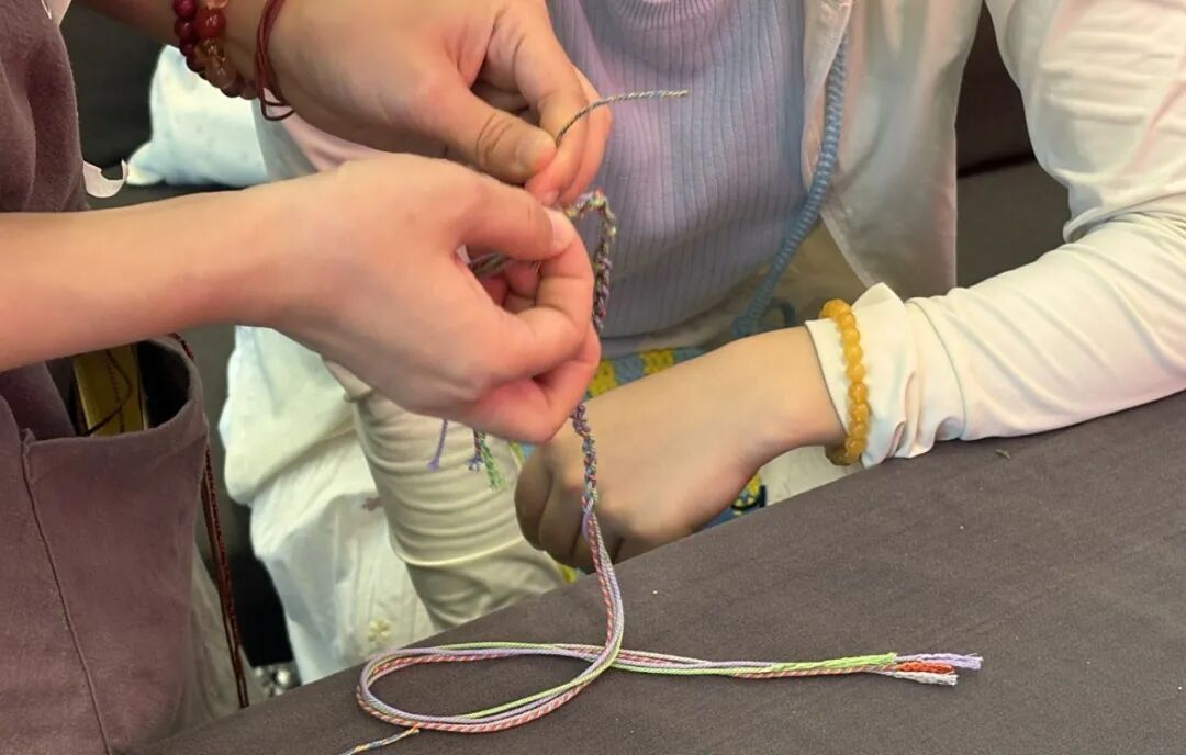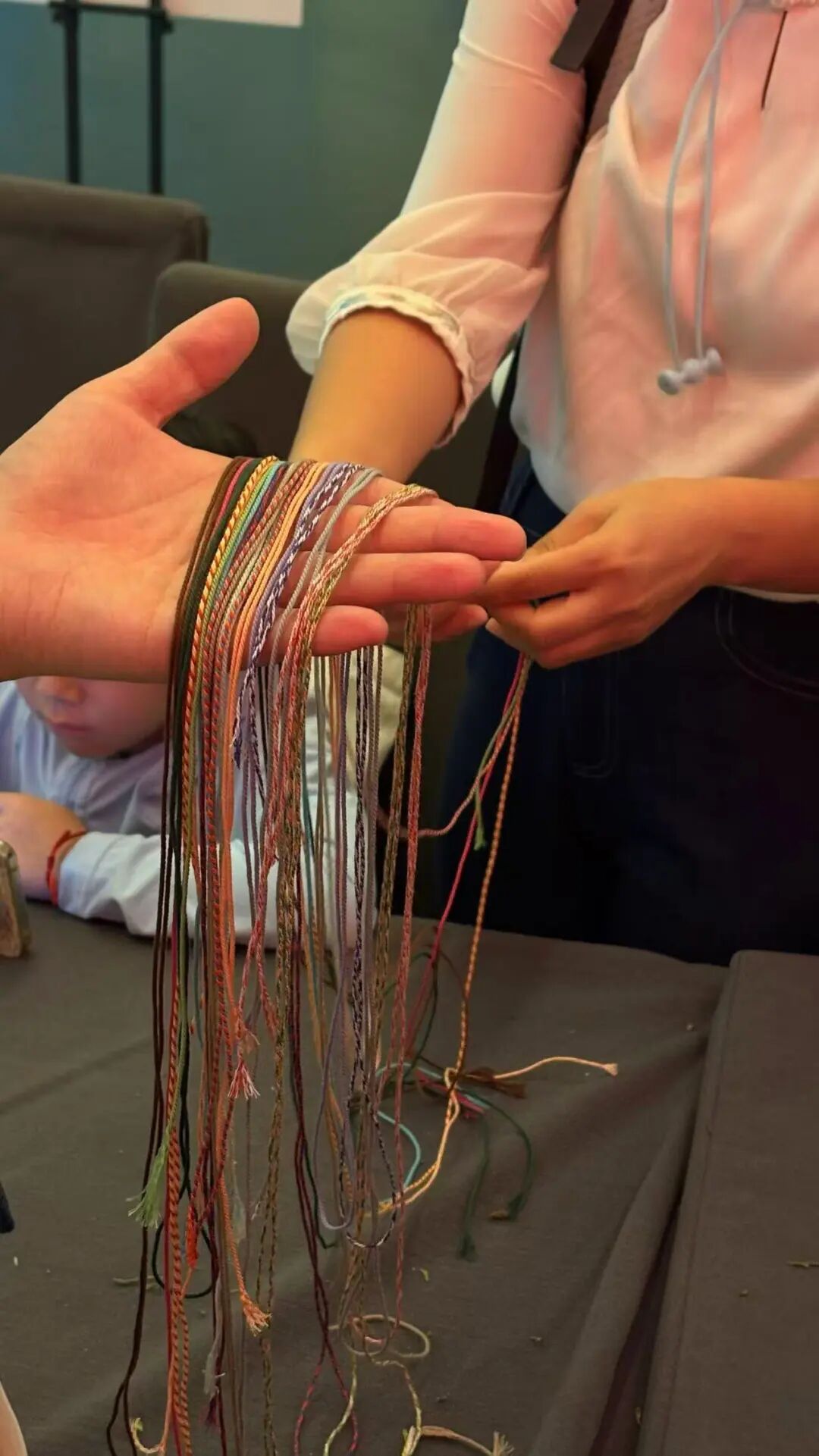 在藏族非遗绳编体验区,参与者们手指轻巧地牵引彩色丝线。在这举国欢庆的时刻,每一根彩线都编织着对家国团圆的美好祝愿,让承载着民族智慧的非遗技艺,为这个双节增添了一抹温暖的色彩。