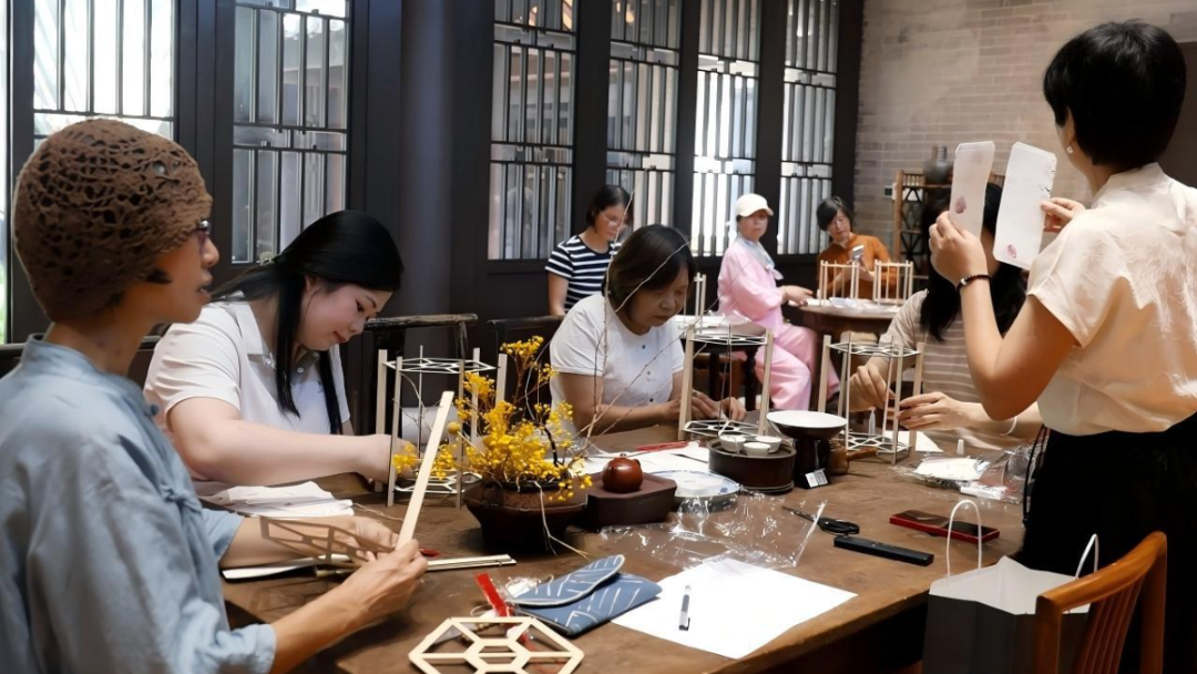 广府园内,金砖茶书房茶香四溢,古董茶砖与现代书案碰撞出生活美学;花房空间里,花艺疗愈课上的永生花与传统插花相映成趣。这是深圳市喜悦汇科技有限公司打造的生活美学空间,8天内推出近30场体验活动,让游客在英石非遗盆景、螺钿手作、漆扇、咏春拳等传统文化体验课程中,“找到自己喜欢的生活方式”。