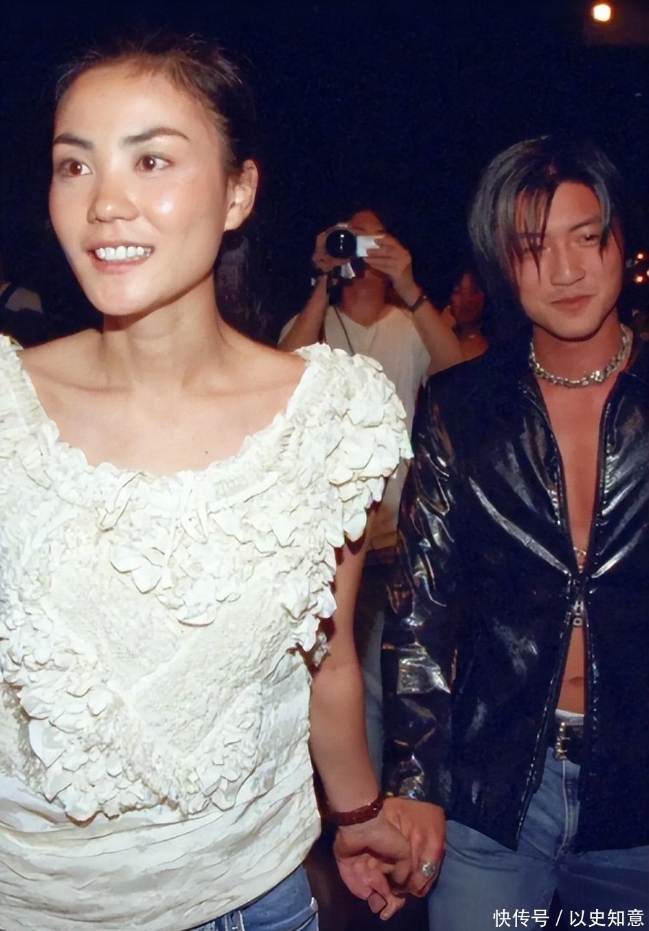 2000年《花样年华》庆功宴现场,王菲主动牵起谢霆锋的手穿过长枪短炮包围圈。