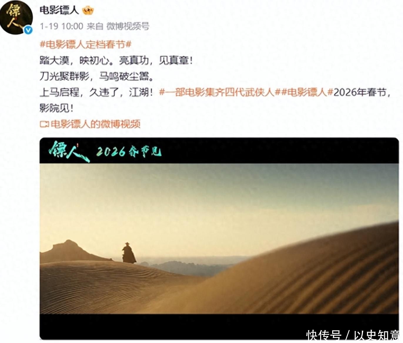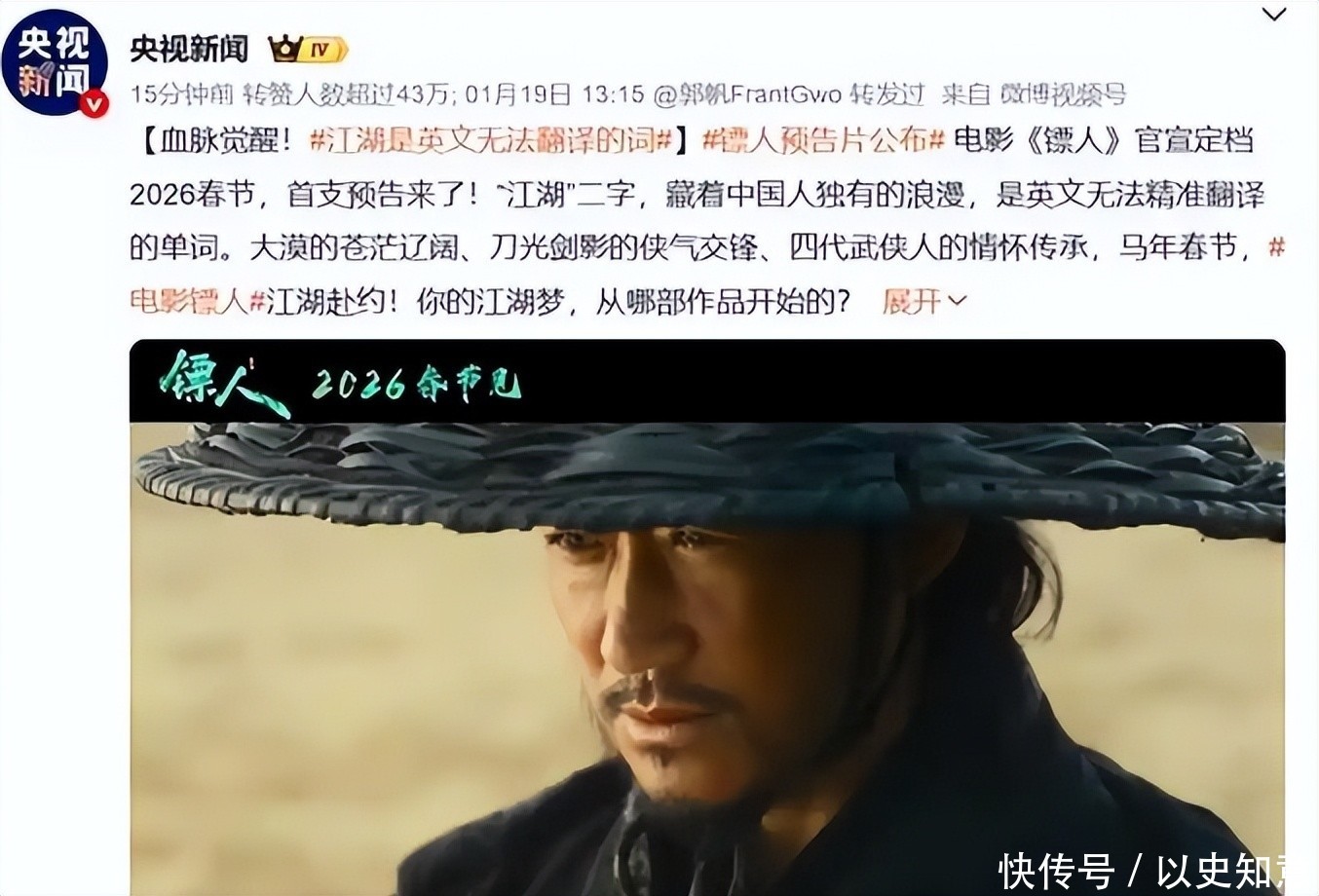 不仅同步推送定档预告短片,更亲自撰文阐释“江湖”二字背后的文化肌理与精神内核。