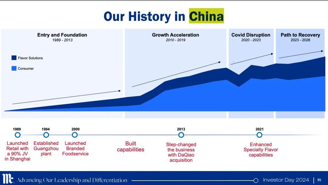 在2024年举行的一场投资者大会上,味好美亚太总裁Sumeet Vohra透露,中国为其亚太区的最大市场,“我们的品牌在多个品类和市场位居第一或第二”、“味好美是(中国)香草和香料品类中知名度最高的品牌”。其会议资料还显示,味好美在中国番茄酱市场位列第二。